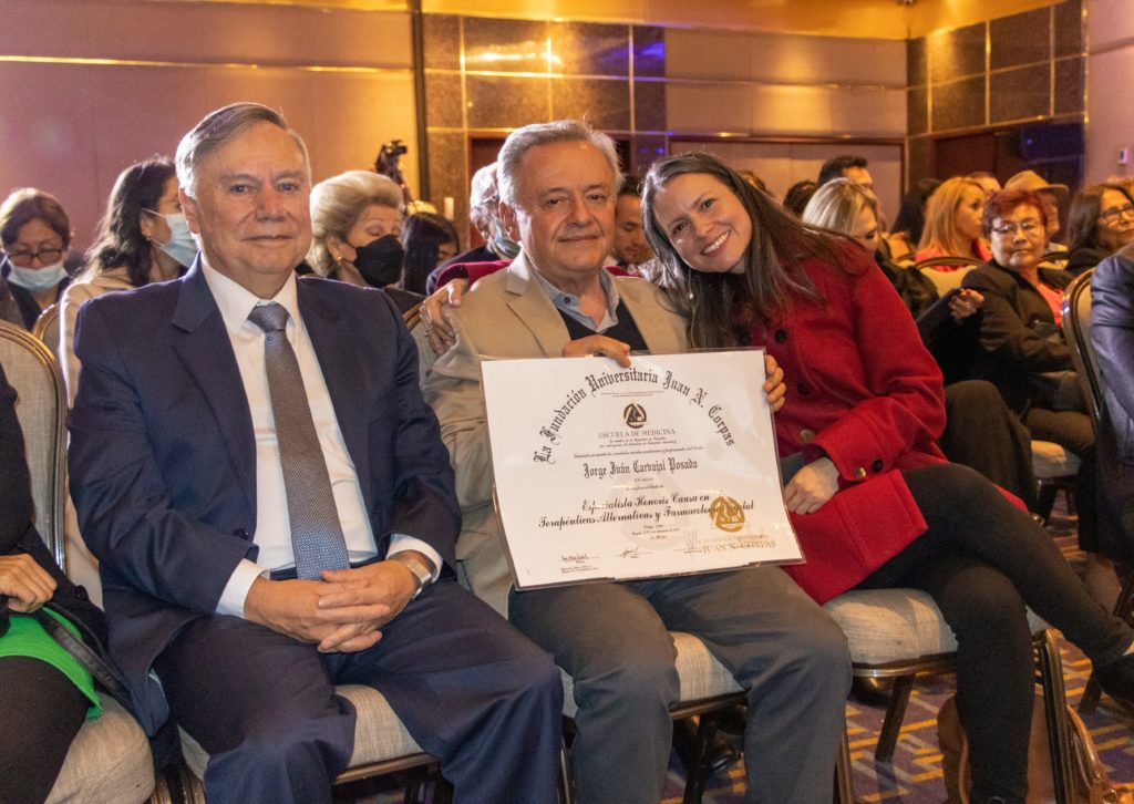 Uno de los mejores momentos durante la graduación fue el nombramiento como Especialista Honoris Causa en Terapéuticas Alternativas y Farmacología Vegetal al Dr. Jorge Iván Carvajal Posada, Médico de la Universidad de Antioquia, “quien desarrolló un concepto alternativo denominado Sinergética, una área del conocimiento que agrupa a todas las diferentes vertientes de la medicina homeopática, alternativa, oriental, entre otras. Y a su vez, dio origen a la creación de la Asociación Internacional de Sinergética”.