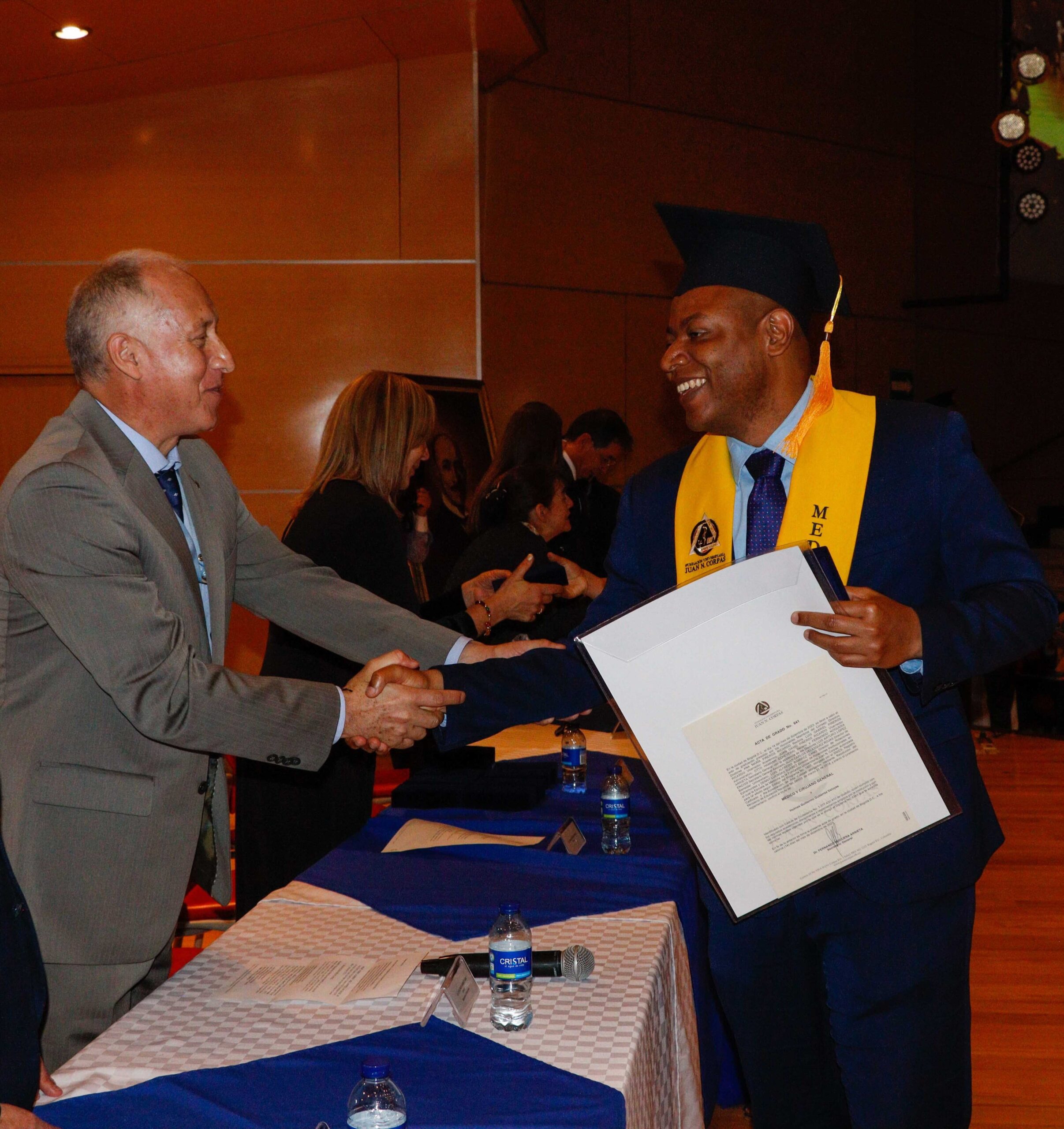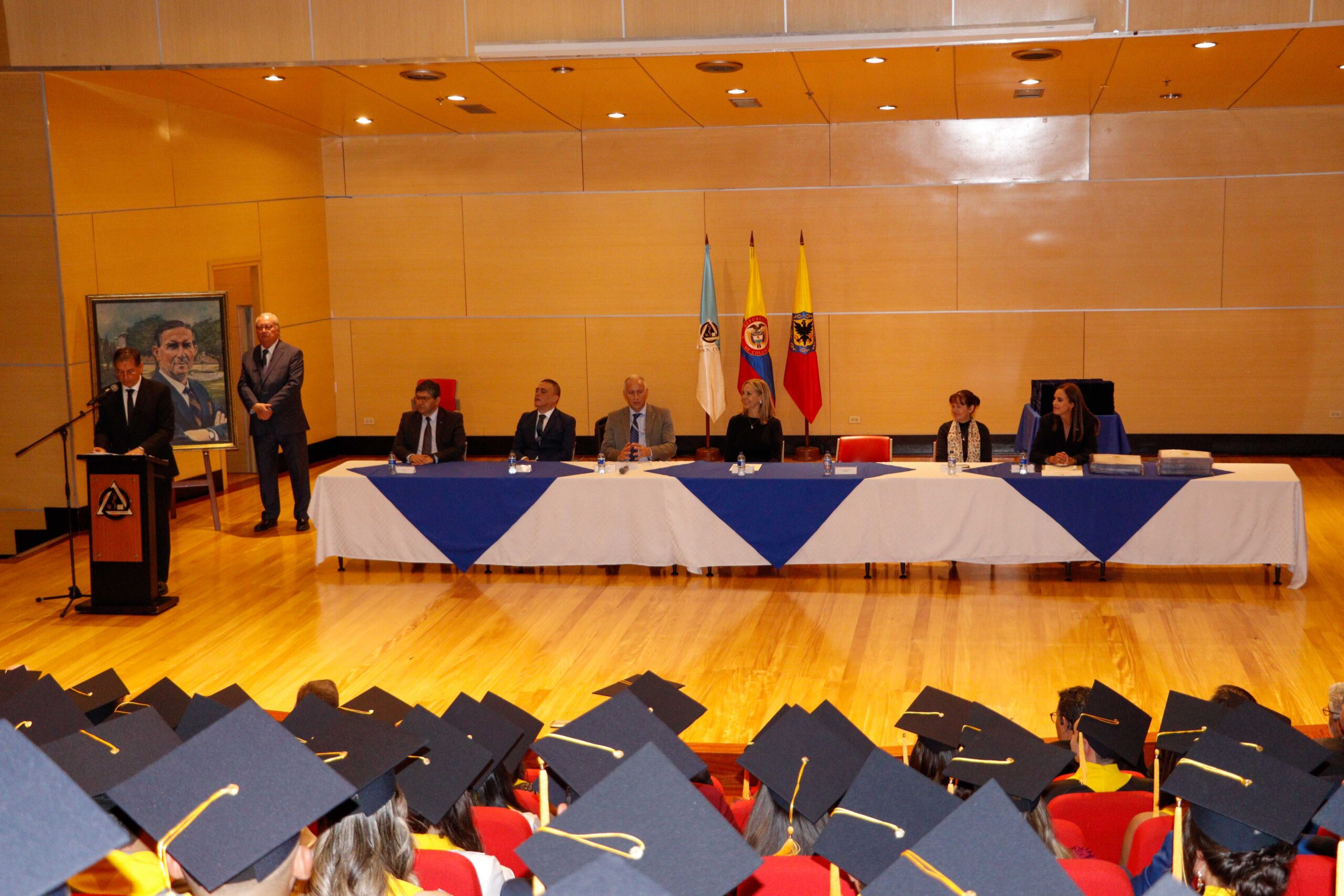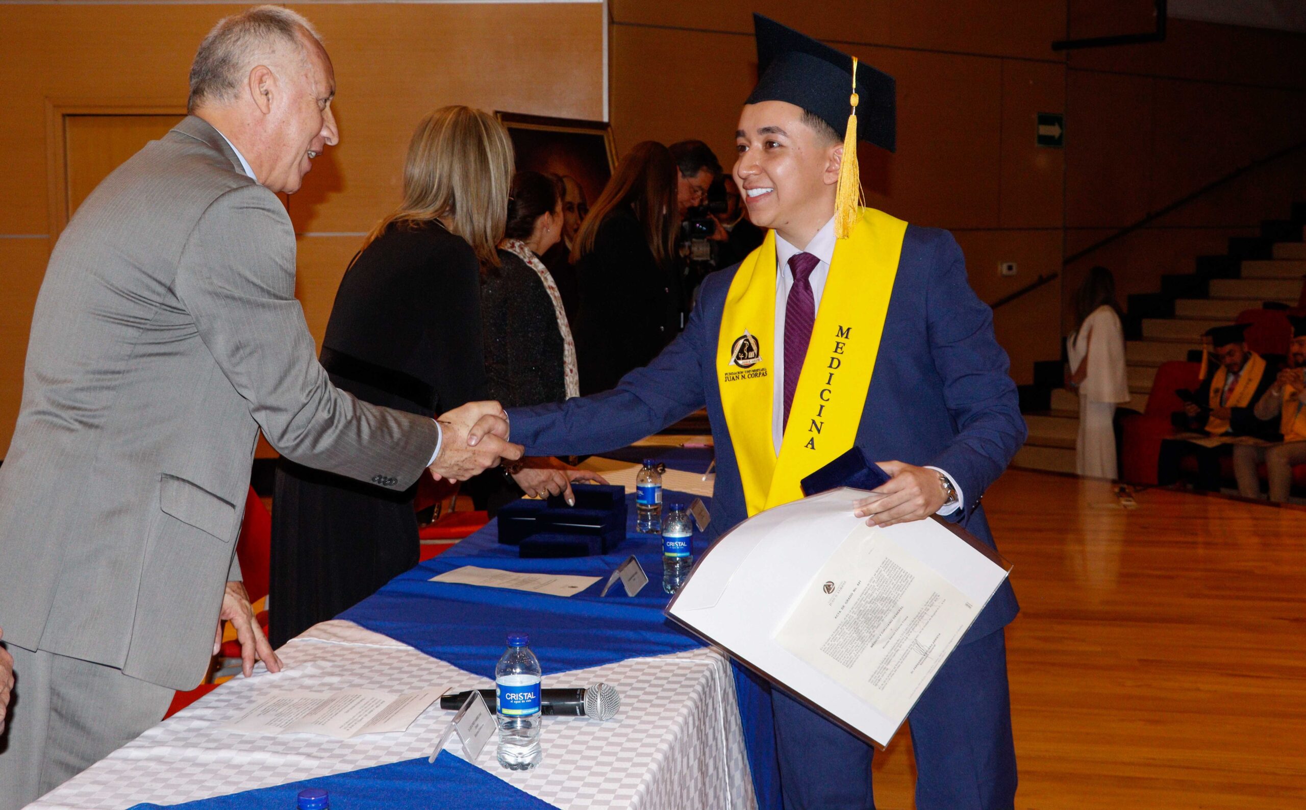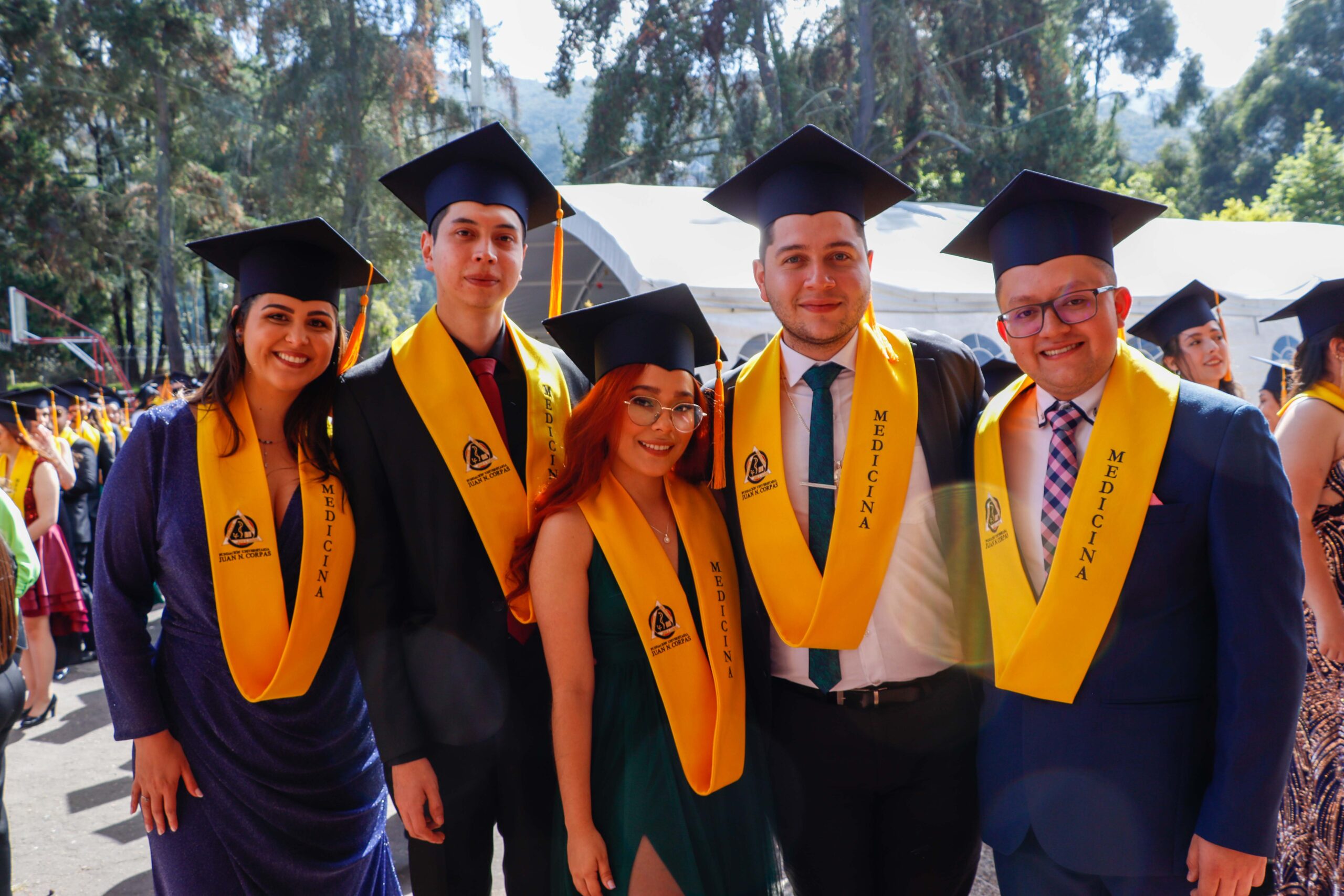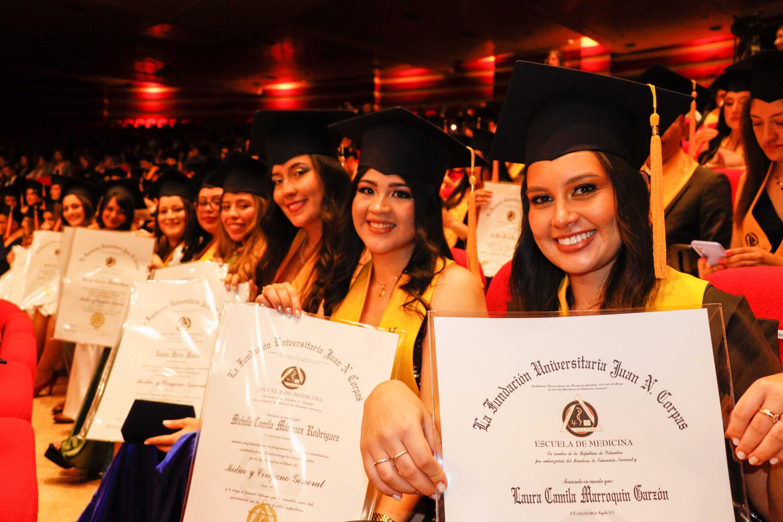 Para la ceremonia de grado de las 9:00 a.m., participaron la Dra. Ana María Piñeros Ricardo, Rectora de la Fundación Universitaria Juan N. Corpas, el Dr. Otto Hamann Echeverri, Decano de la Escuela de Medicina, la Dra. Mónica Álvarez, Jefe de Gestión Académica de dicha Escuela, el Dr. Juan Carlos Velásquez, Director del Departamento de Bienestar Universitario, la Dra. Luz Helena Carvajal Pabón, Coordinadora de Semiología, el Dr. Luis Alfredo Ramírez Cano, Director de Rotaciones Extramurales y el Dr. Denny Luengas Suárez, Director de Rotaciones Institucionales.