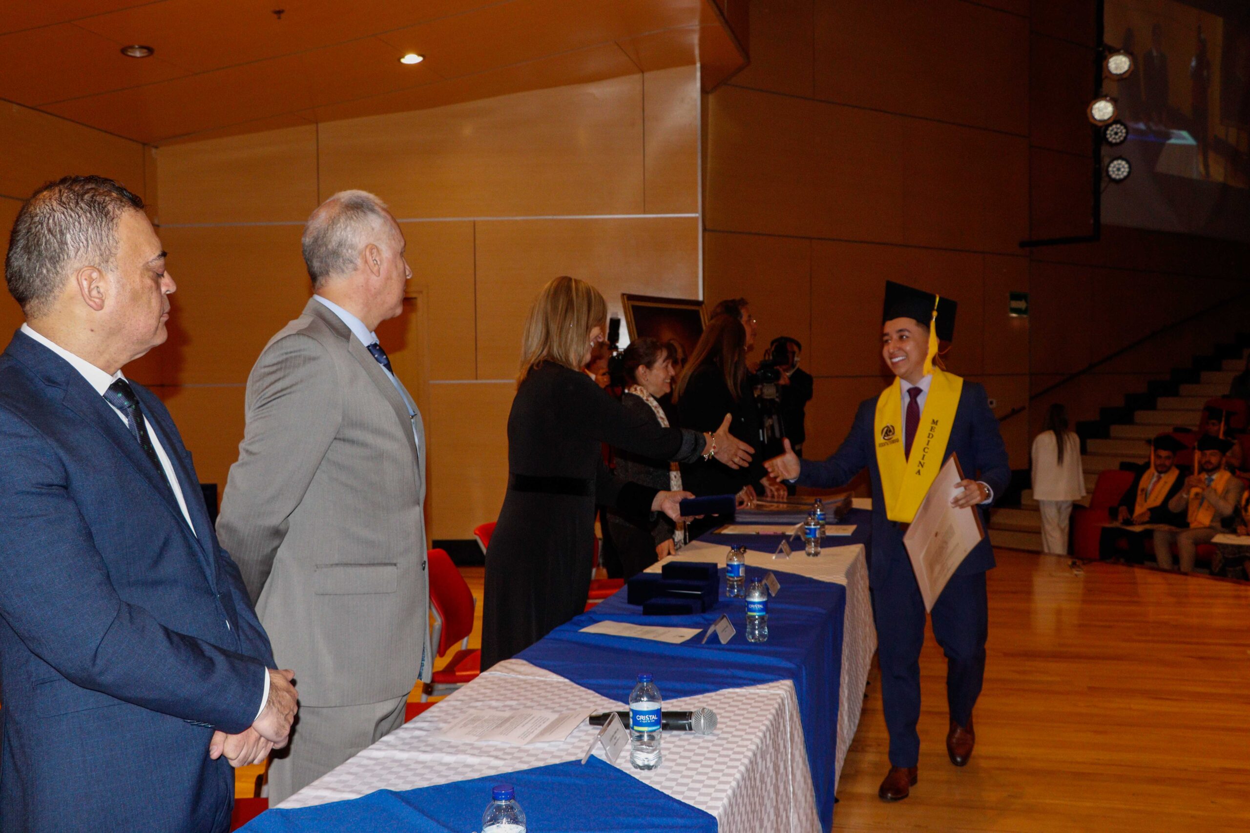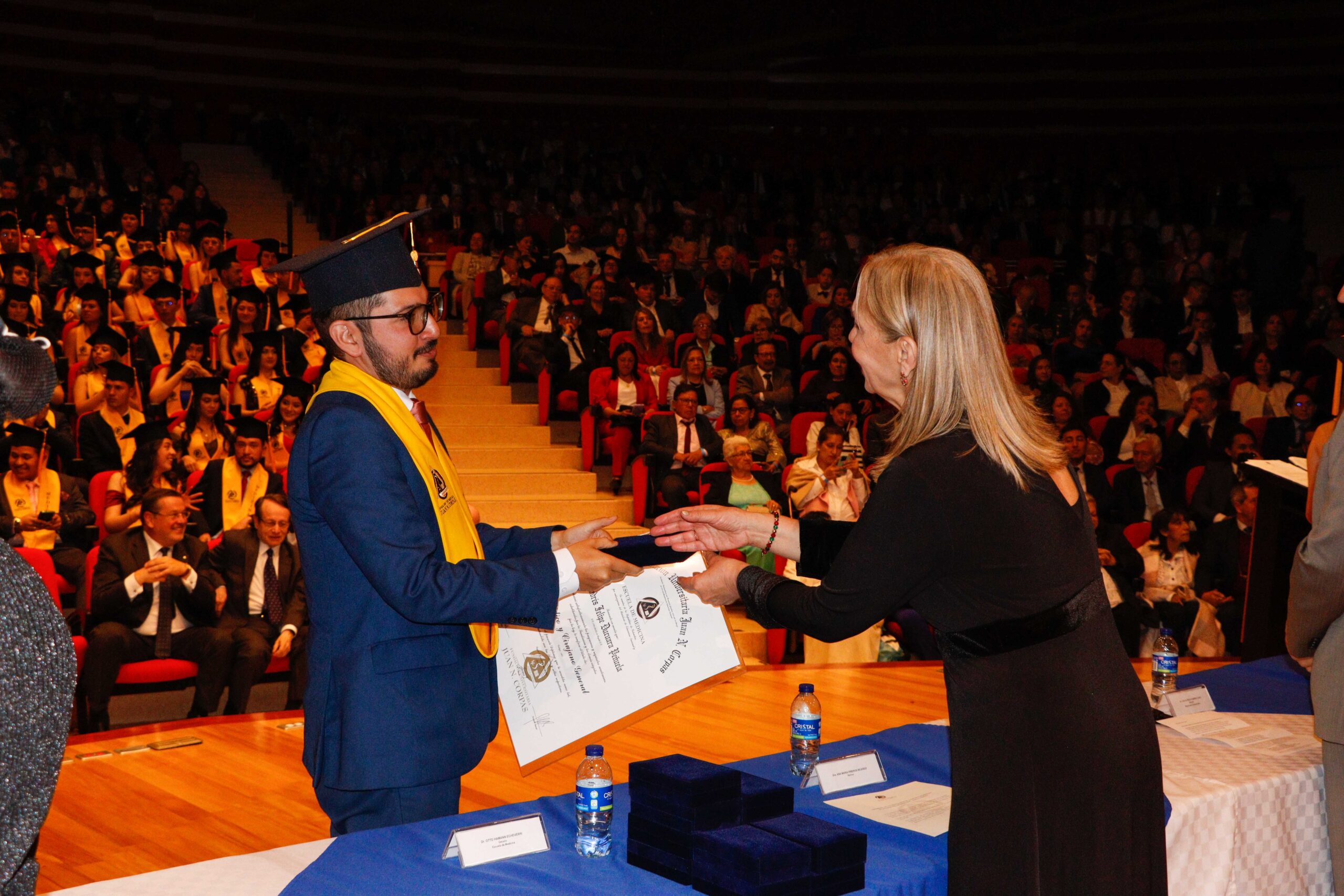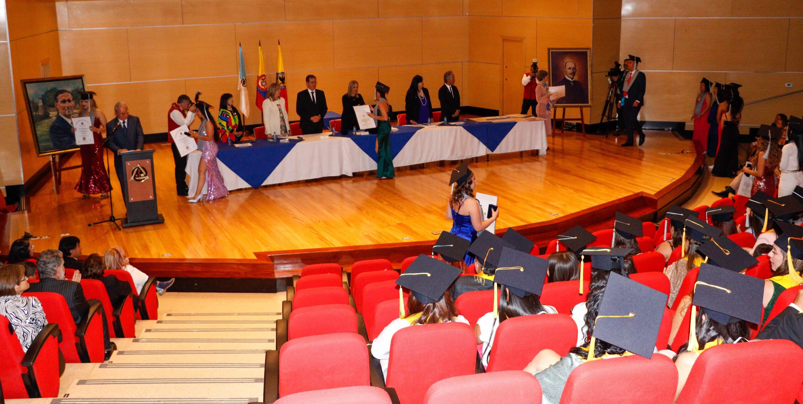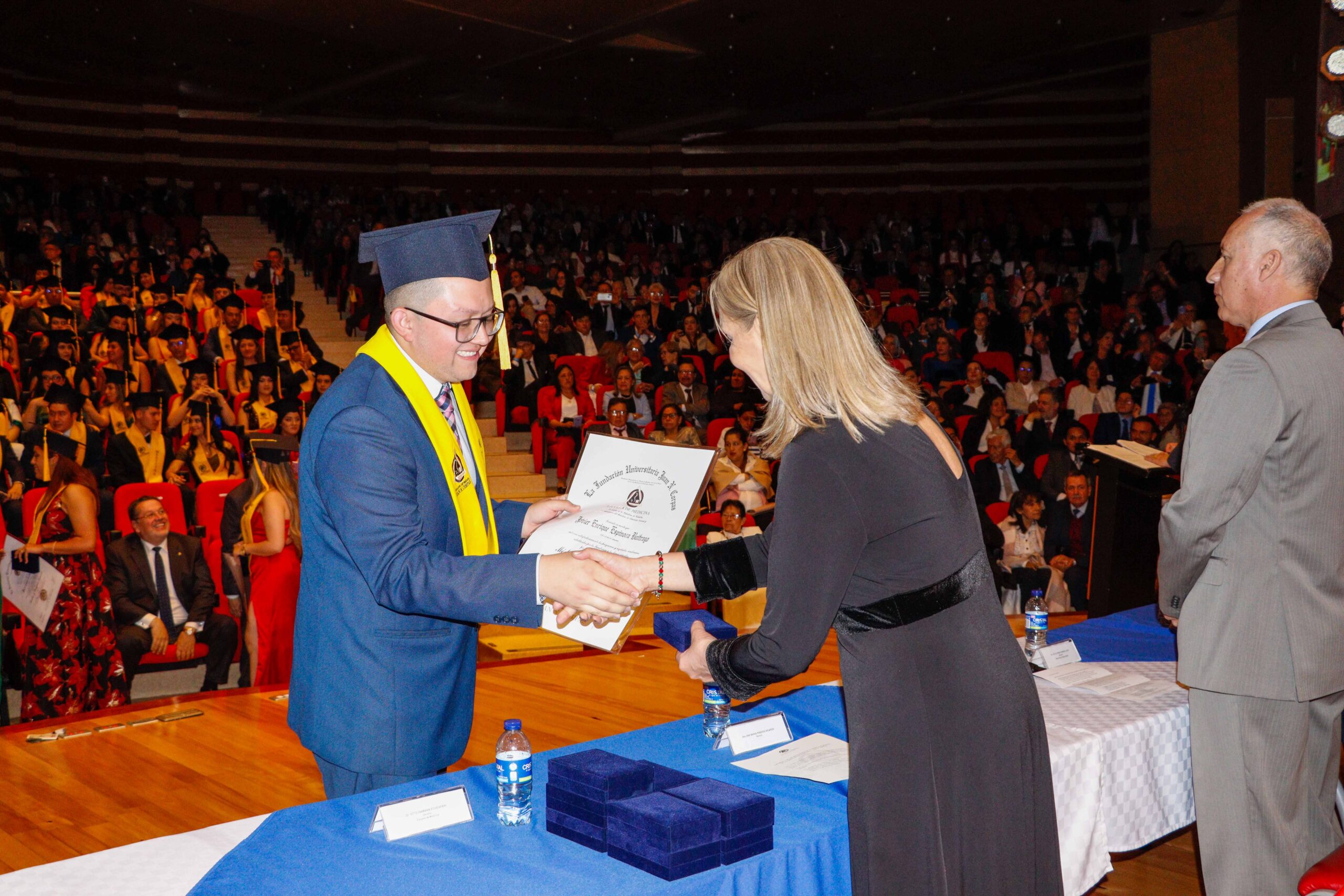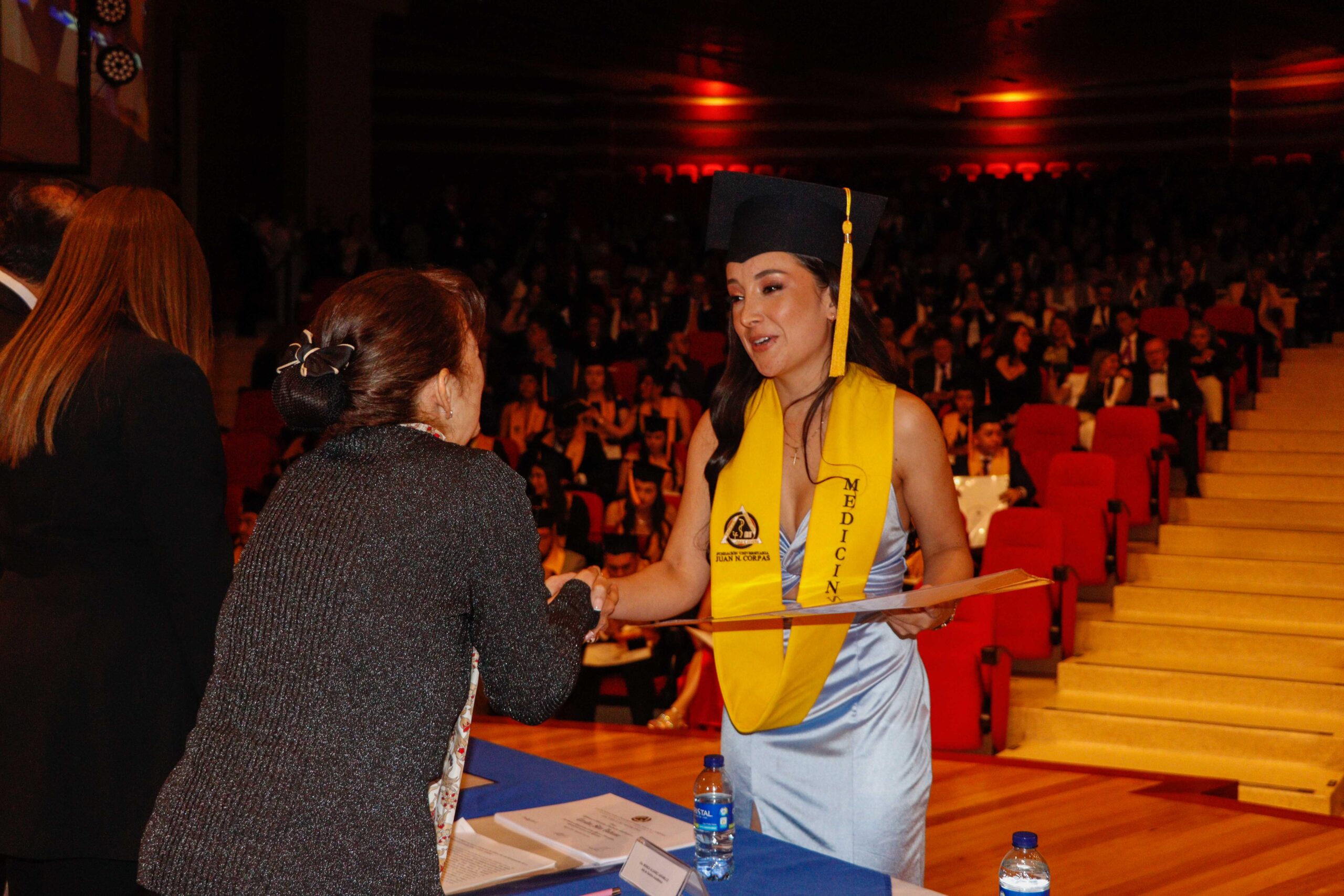 Para la ceremonia de grado de las 9:00 a.m., participaron la Dra. Ana María Piñeros Ricardo, Rectora de la Fundación Universitaria Juan N. Corpas, el Dr. Otto Hamann Echeverri, Decano de la Escuela de Medicina, la Dra. Mónica Álvarez, Jefe de Gestión Académica de dicha Escuela, el Dr. Juan Carlos Velásquez, Director del Departamento de Bienestar Universitario, la Dra. Luz Helena Carvajal Pabón, Coordinadora de Semiología, el Dr. Luis Alfredo Ramírez Cano, Director de Rotaciones Extramurales y el Dr. Denny Luengas Suárez, Director de Rotaciones Institucionales.