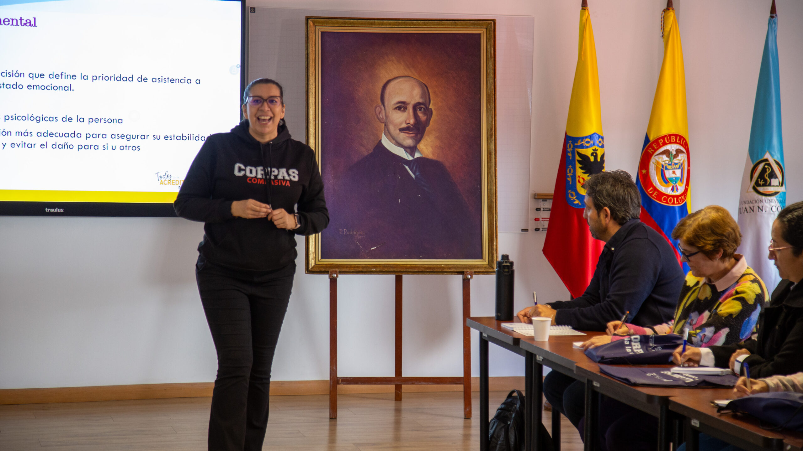 Asimismo, se realizó una presentación institucional a cargo de Andrea del Pilar Cuervo Abondano, Jefe de Mercadeo, en la cual se socializaron los beneficios exclusivos para nuestros aliados de CORPAS CONECTA y sus estudiantes, incluyendo descuentos en los servicios y productos del Grupo Social Corpas y otras ventajas al hacer parte de la comunidad Corpas Conecta