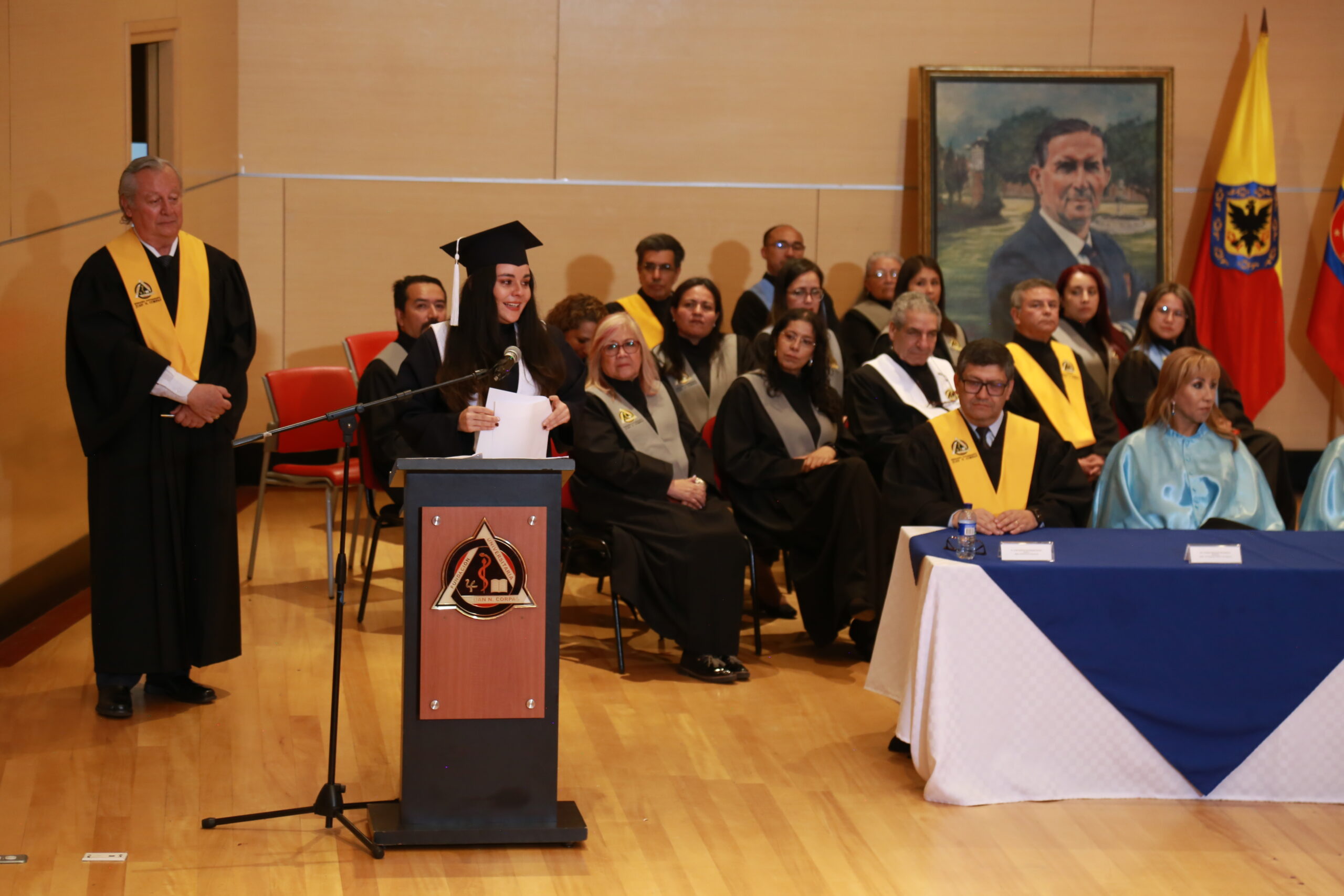La ceremonia se realizó en el Auditorio Jorge Arango Tamayo de la Institución Universitaria Colegios de Colombia, escenario ejemplar que recibió a todos nuestros nuevos egresados, acompañados por sus familiares y seres queridos, a los miembros del cuerpo docente y a la mesa directiva de nuestra amada institución.