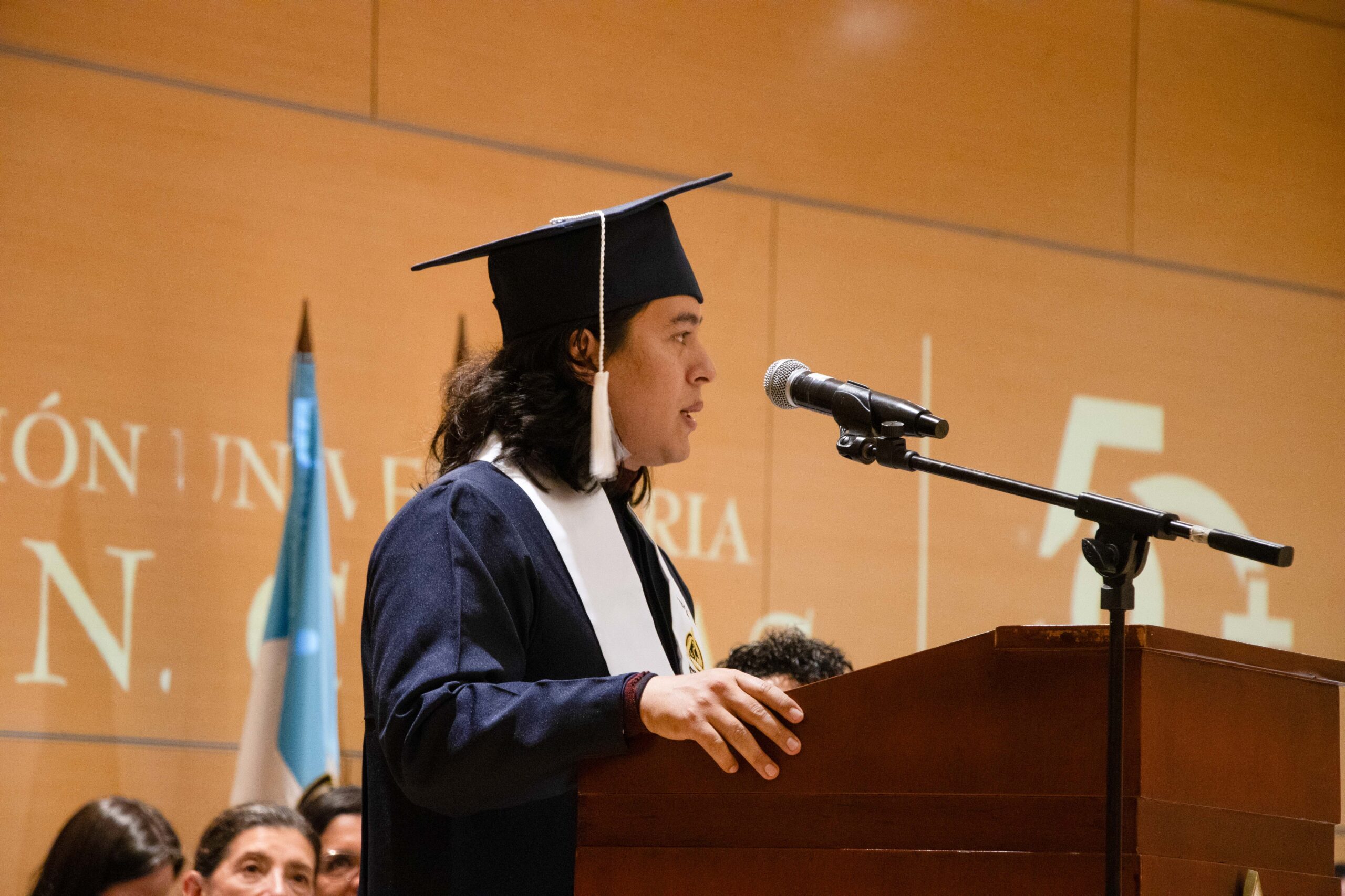 Dr. Ricardo Salcedo Vargas – Médico Egresado y Padre de Graduanda: “Siento un enorme placer en mi corazón que late de felicidad de verla hoy hecha una profesional y saber que ha sido una de las mejores internas… Cuando ella terminó su bachillerato le dije: ‘¿bueno y qué vas a estudiar?’. Me dijo: ‘Medicina’. (Le dije): ‘No, ¿qué te vas a poner a estudiar medicina? La medicina es muy larga, requiere mucha dedicación, persistencia’. (Ella respondió): ‘No me importa, si tú la tuviste yo por qué no la voy a tener y quiero estudiar en tu universidad también'”.